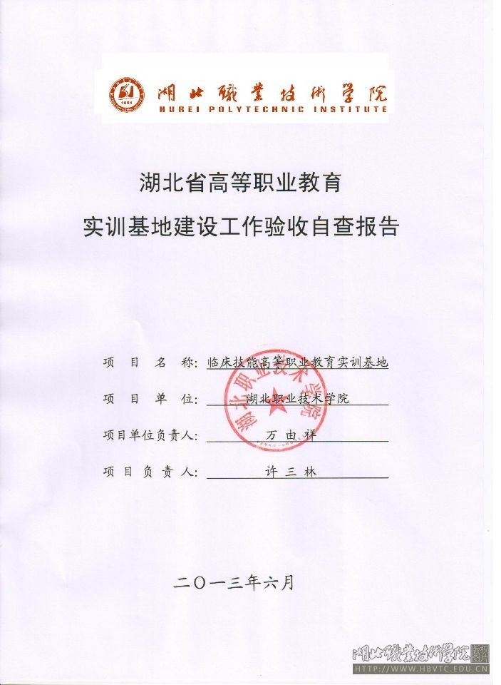 校企共建生产性实训基地——湖北省高等职业教育实训基地建设工作验收自查报告